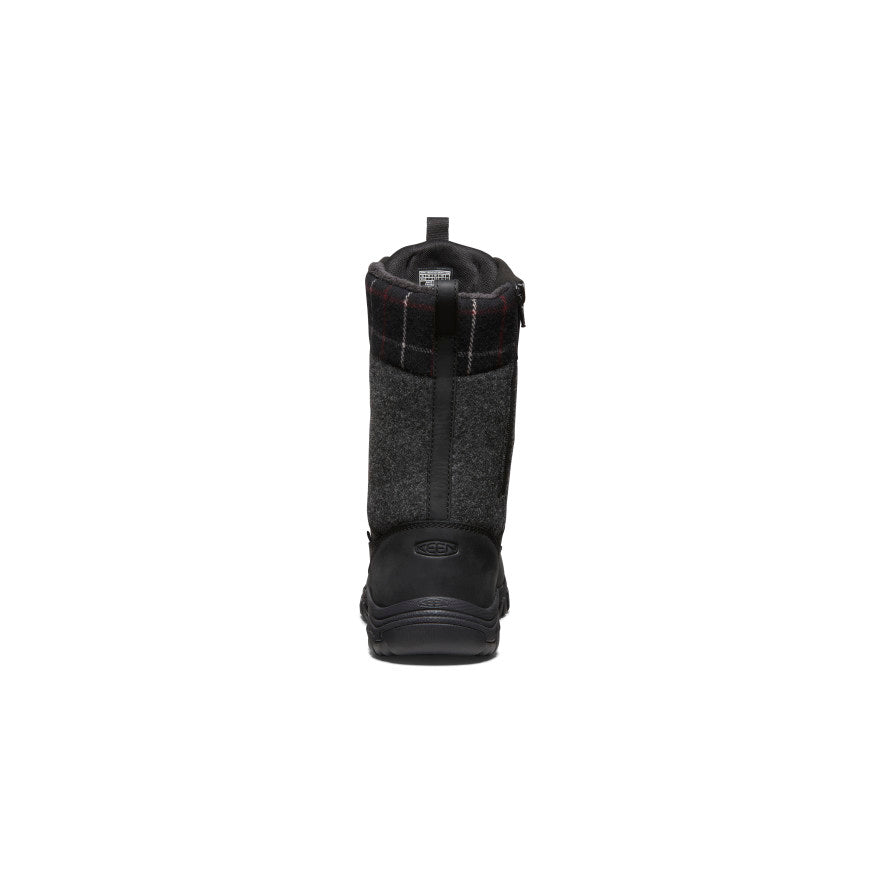 Puffy jacket meets tall hiking boot. Winter-ready with cold-weather traction. 200g of insulation. and a tall quilted collar.